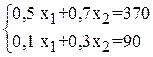 0,5 x1+0,7x2 £ 370