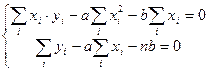 Разрешив данную систему уравнений относительно неизвестных параметров а и b, определим искомую функцию