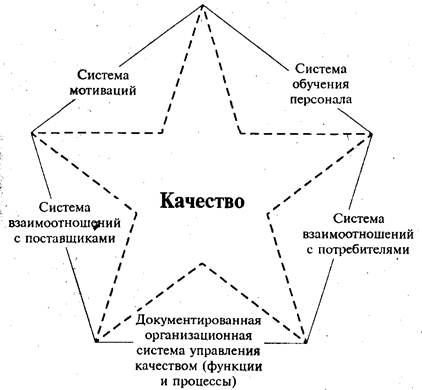 В основание звезды качества положим ту или иную систему управления качеством, соответствующую определенной концепции. Будем предполагать, что система эта документирована и охватывает организационную структуру управления предприятием, а также систему