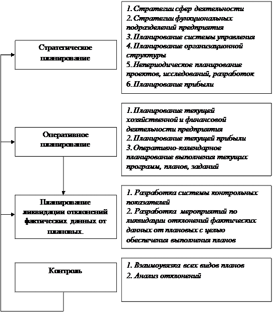 В практической деятельности предприятия используют различные виды планирования или их комбинацию. Под системой планирования и контроля понимают методы и порядок разработки и выполнения планов, различающихся между собой содержанием, временным периодом и формой. Функцию контроля включают в определение системы планирования, так как без нее невозможна реализация гибкого планирования.