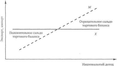 Рис. 7.1. Национальный доход и сальдо торгового баланса страны: