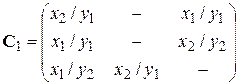 , строки которой соответствуют исходным состояниям, а столбцы – состояниям перехода. Элемент cij = xk / ys в случае автомата Миля соответствует входному сигналу xk, вызывающему переход из состояния zi в состояние zj, и выходному сигналу ys, выдаваемому при этом переходе. Для автомата Миля F 1, рассмотренного выше, матрица соединений имеет вид: