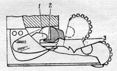 1-зуб шептала; 2-палочка уступа предохранителя; 3-выступ предохранителя