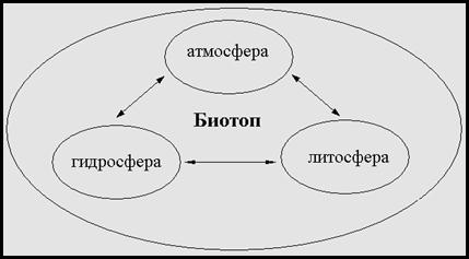 Участок земной поверхности (суши или водоема) с одинаковыми условиями среды, на котором существует биоценоз, называют биотопом (греч. биос – жизнь, топос – место).
