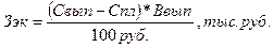 Снижение себестоимости единицы продукции (100 руб. доходов) рассчитывается по формуле: