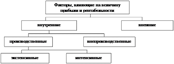 Факторы, влияющие на величину прибыли и рентабельности представим в виде схемы: