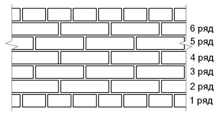 1) однорядная (цепная) система перевязки представляет собой последовательное чередование тычковых и ложковых рядов. Эта система трудоемка, но более прочная.