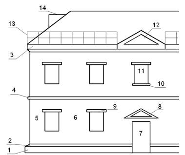 3 – главный (венчающий) карниз предназначен для отвода попадающих на ограждающие конструкции здания вод;