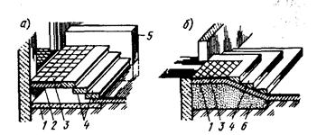 1 – бетонная подготовка; 2 – железобетонная плита; 3 – пол; 4 – ступени; 5 – боковая стенка; 6 – песок