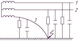 Рис. 2.7. Схема замыкания фазы на землю в сети