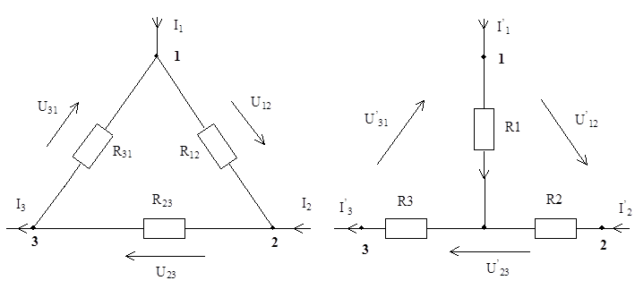 Эквивалентное преобразование треугольника сопротивлений в звезду и обратно.