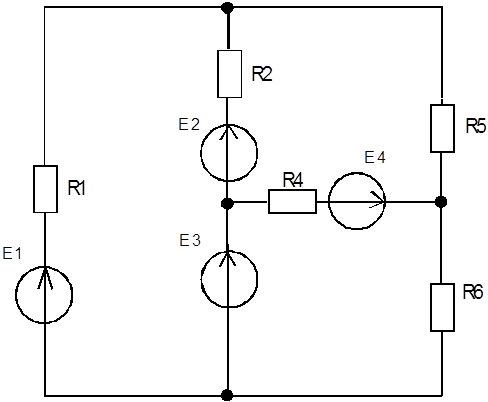 Рисунок 3.15 Схема соединения сопротивлений и источников ЭДС