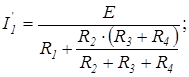 методом эквивалентных преобразований, пользуясь законом Ома и формулой распределения токов.