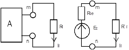 Любой линейный активный двухполюсник можно заменить эквивалентным источником напряжения с ЭДС, которая равна напряжению холостого хода на зажимах двухполюсника, и внутренним сопротивлением, равным выходному сопротивлению пассивного двухполюсника.