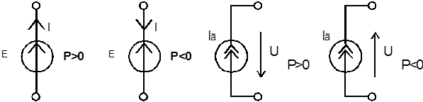 Знак направления источника зависит от направления тока через источник Э.Д.С. или напряжения на зажимах источника тока.