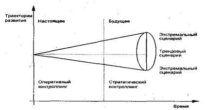 Планирование будущего для каждого предприятия неопределенно. Неопределенность относительно наступления предсказанного возрастает с продвижением в будущее. Поэтому воронка сценария со временем все сильнее расширяется.