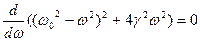 Для нахождения резонансной частоты нужно приравнять к 0, производную