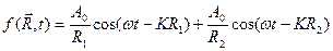 Определим волновую функцию в точке p. Так как волновое уравнение линейно то волновая функция в точку p линейна.