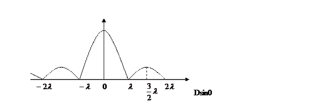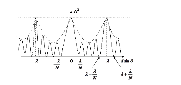 Следует заметить, что амплитуды побочных максимумов будут значительно меньше амплитуды центрального.