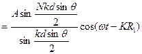 Каждый источник излучает сферическую волну с одинаковой амплитудой, частотой и одинаковой начальной фазой которую будем считать равной нулю. Так как точка p находиться в волновой зоне то можно допустить, что амплитуда волновой функции от каждого источника одинаковы.
