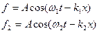 Рассмотрим 2-е монохроматические волны которые распространяться вдоль оси х с разной частотой и разным волновым вектором.