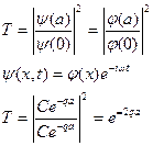 Таким образом существует вероятность, что частица может пройти потенциальный барьер и область x<0 в области x>a. Эта вероятность характеризуется коэффициентом пропускания, который равен квадрату модуля отношения