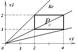 - конус, крайними векторами которого являются векторы нормалей ограничений в точке