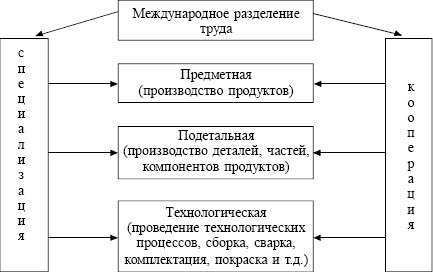 Материальную основу мирового хозяйства составляет международное разделение труда – специализация и кооперирование стран в сфере производства товаров и услуг (рис. 36).