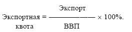 Показателем, характеризующим вовлеченность в мировое хозяйство национальной экономики, является экспортная квота, исчисленная как отношение экспорта страны к созданному в ней внутреннему валовому продукту (ВВП), выраженная в процентах:
