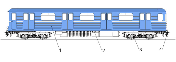- стояночный тормоз - ручной механический, действующий на тормозные колодки левой стороны только одного вагона (Е, Еж-3), блок-тормоз (81 серии), действующий на 1-ю и 4-ю колесную пару.