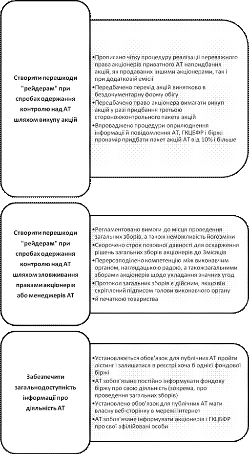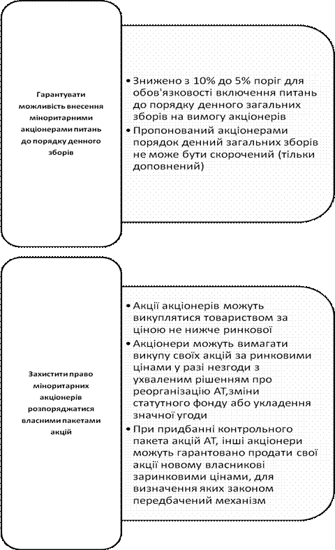 Закон України «Про акціонерні товариства» має на меті підвищення стандартів захисту прав акціонерів зокрема: