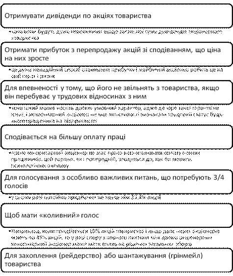 Рис. 7.6. Мотиви та можливості міноритаріїв при купівлі акцій, враховуючи рівень захисту прав, встановлений чинним законодавством