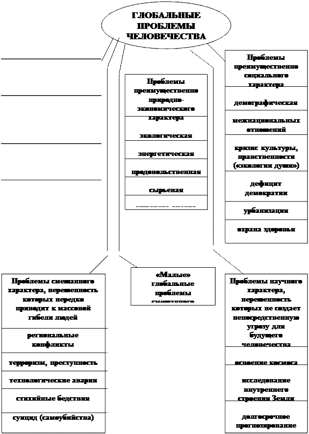 | Глобальными называют проблемы, возникающие в результате объективного развития общества, создающие угрозу всему человечеству и требующие для своего решения объединенных усилий всего мирового сообщества. |