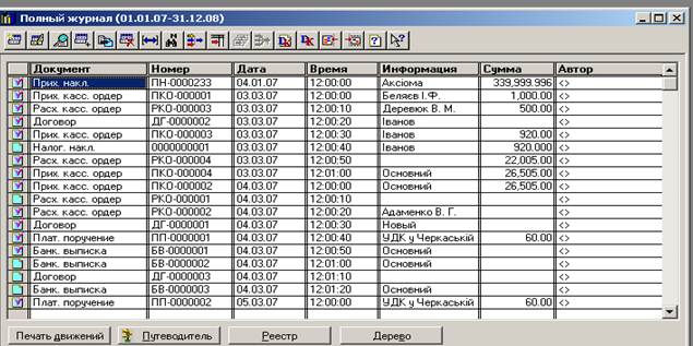 Вікно з журналом документів у загальному випадку являє собою таблицю, що має чотири графи: