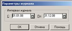 Коли вікно з журналом викликається на екран, інтервал видимості автоматично встановлюється таким, як визначено в настроюванні параметрів журналу (пункт Параметри меню Сервис головного меню програми).