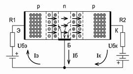 Дырки из коллектора как неосновные носители зарядов будут переходить в базу, образуя обратный ток коллектора Iкобр.