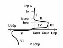 IV – участок в прямом включении, на котором динистор заперт, и приложенное к его выводам напряжение меньше, чем необходимо для возникновения пробоя,