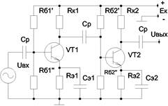 Резисторно-емкостная связь является наиболее широко распространенной в усилителях переменного напряжения.