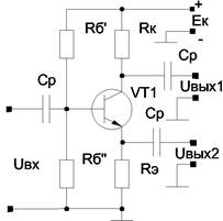 Частично недостатки трансформаторных каскадов можно устранить, если на входе вместо трансформатора Tpl поставить фазоинверсный каскад (или каскад с разделенной нагрузкой), имеющий два выхода.