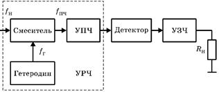 Структурная схема РПМ супергетеродинного типа, который состоит из гетеродина и смесителя показана на рисунке ниже.