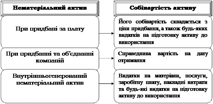 9. Яка оцінка придбаних нематеріальних активів в поточному бухгалтерському обліку?