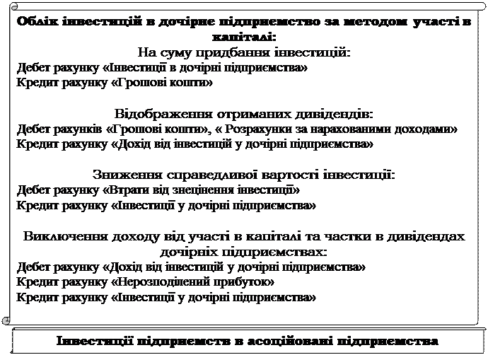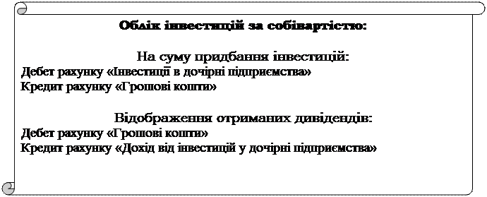 3. Яка оцінка фінансових інвестицій в дочірні компанії. Як ведеться облік таких інвестицій?