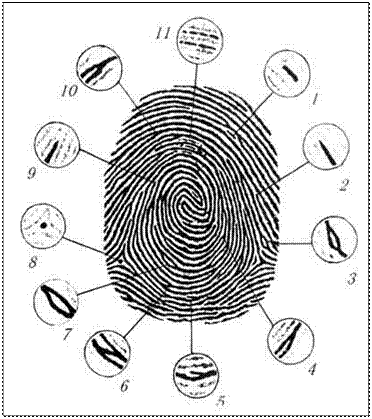 Детали папиллярного узора ногтевой фаланги (частные признаки).