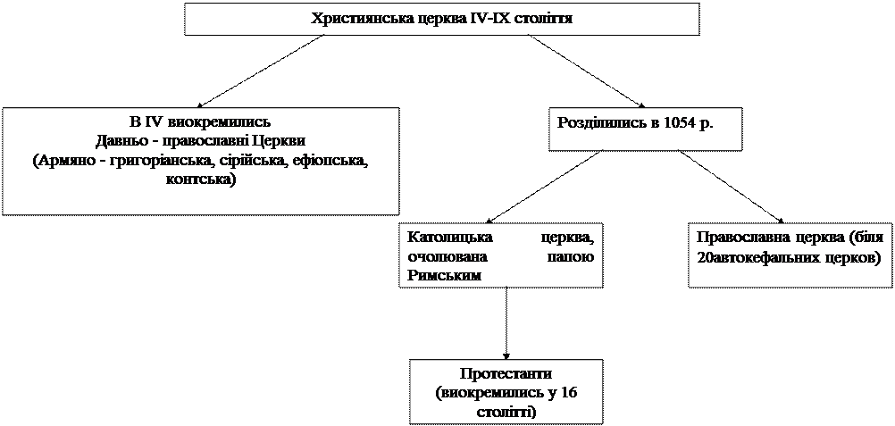 В 1054 році колись єдина християнська церква розпадається на дві гілки: західну (католицьку, римсько-католицьку, латинську, папську) і східну (православну, ортодоксальну, грецьку, візантійську).