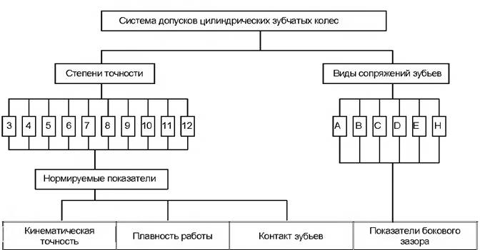. Для зубчатых колес и передач установлено двенадцать степеней точности, обозначаемых в порядке убывания точности цифрами от 1 до 12.