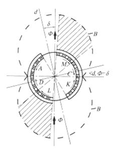 Чем больше угол между d и Ф, тем больше размеры активно действующих зон (на рисунке 1.3 они заштрихованы).