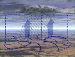 | В центре—восходящее движение воздуха | В центре—нисходящее движение воздуха |