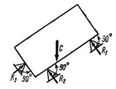 4) Связь, осуществляемая точечной опорой (рис. 1.3 г). Реакция связей R1, R2 R3, направлены перпендикулярно поверхности опирающегося тела.