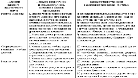 Психологические требования к содержанию развивающей и психокоррекционной работы в начальной школе