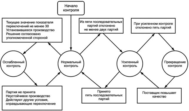 Переключение с усиленного контроля на нормальный контроль Усиленный контроль переключают на нормальный контроль в том случае, если пять последовательных партий были приняты с первого предъявления